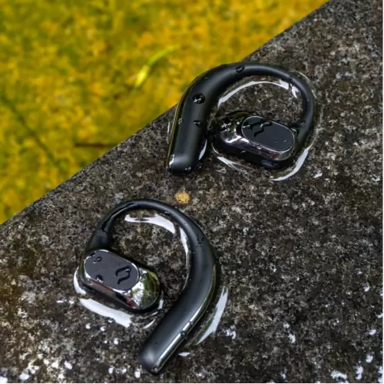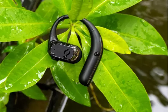 奢音 X60 的流线弧耳挂设计很出彩,柔性钛合金丝被双层硅胶包裹,外层液态亲肤硅胶触感顺滑,内层自研超零度硅胶把压迫感降到了最低。耳机贴合 “黄金佩戴曲线”,纤细的耳挂和眼镜腿互不干扰,就算长时间戴眼镜,也不会有挤压不适。单耳仅 7.7g 的超轻重量,加上高韧性回弹结构,剧烈运动时耳机能稳稳贴在耳廓上,不晃动、不脱落,也没有明显负重感。再加上 IP68 级防尘防水,不管是在挥汗如雨的健身房,还是遇到突如其来的小雨,X60 都能应对自如。