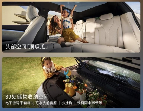 得益于短前悬、长后悬的创新设计,小鹏G7实现88%超大得房率,整车空间达4.47m³。后备厢容积为同级最大819L,且可扩展至2277L,轻松容纳37个20英寸行李箱;更令人惊喜的是多达39处收纳细节的贴心设计,42L可水洗前备厢、5.9L密码手套箱、无级悬停磁吸桌板、专属纸巾盒磁吸位置等,充分满足家庭出行场景。