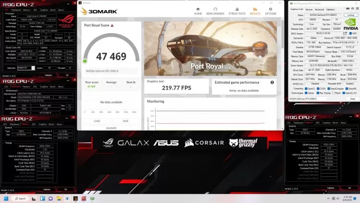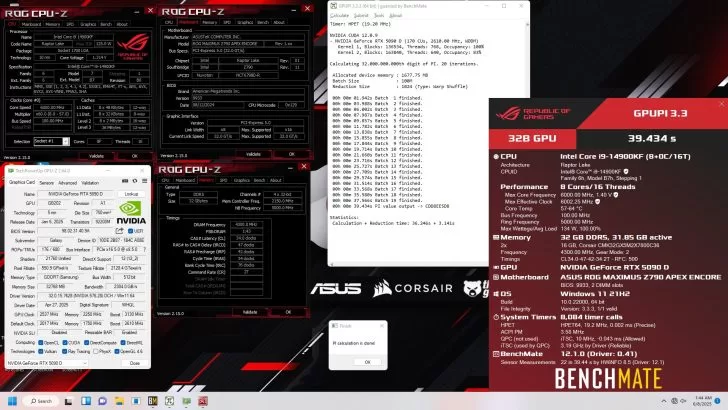 至于成绩,影驰GeForce RTX 5090 D在一项基准测试中被超频至超过3.6GHz,在两项基准测试中被超频至超过 3.5GHz。最高时钟频率为3650MHz,是在 GPUPI基准测试中获得的,该测试用时 39.434 秒(32B 得分)。