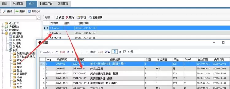 2.2 BOM导入后通过SQL视图可以轻松执行BOM展开计算,BOM材料成本核算和结构查询。