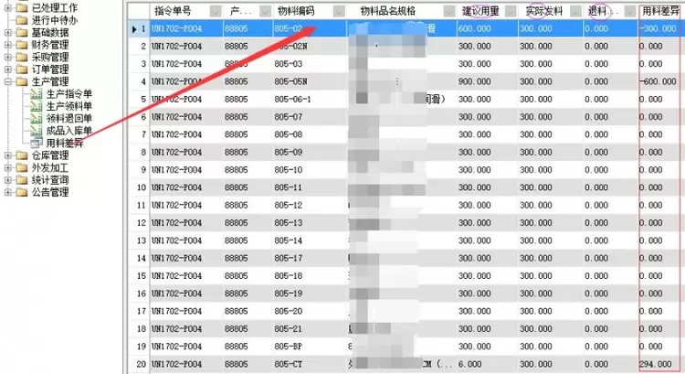 2.4 自动计算生产用料差异,方便成本管控与考核。