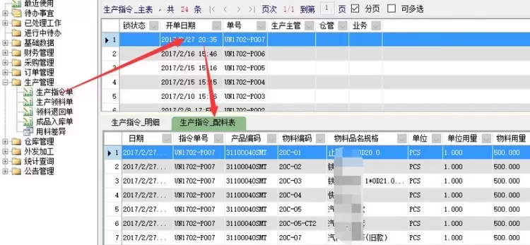2.3 通过BOM的展开计算结果,自动提示生产订单理论配料,指导和规范生产部门按需申请物料。