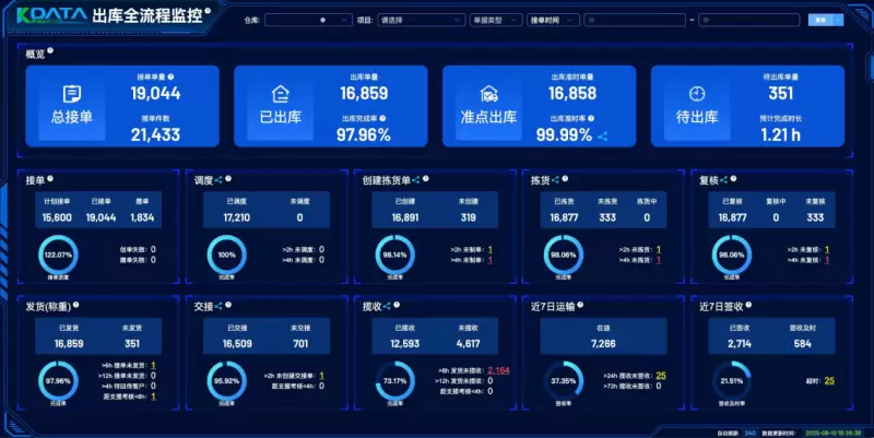 苏涛:升级后的KingKooData系统,核心在于强化过程管理。它实现了全链路可视化,清晰展示各环节状态,并将每个环节拆解,提供详细数据,即“一岗一屏”理念,真正实现了数据驱动业务流程的变革。如今走进仓库,大屏从制单、拣选、复核到发货交接,环环相扣,彻底改变了传统运营模式。