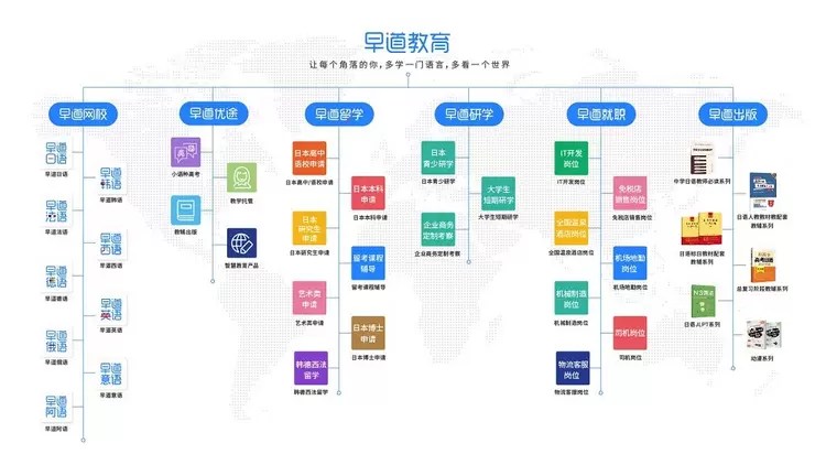 经过十三年的深耕与发展,早道教育已成为多语种教育领域的佼佼者,旗下拥有早道网校、早道优途、早道留学、早道研学、早道就职、早道出版等六大业务品牌,形成了多元化、全方位的教育服务体系,致力于为全球学员提供高品质的教育产品和服务。