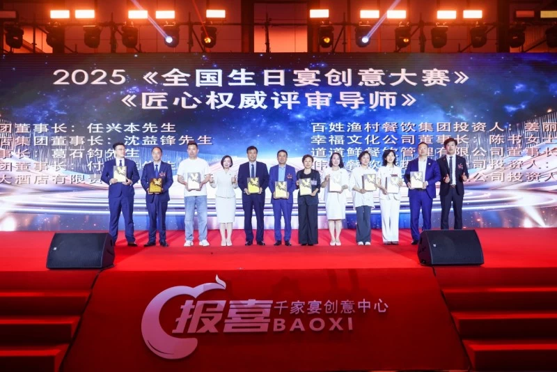 苏州知音餐饮董事长作为协办方感慨:“这场大赛让生日宴从‘增值服务’升级为‘战略级产品’,餐饮正式进入‘一生一宴一世界’的精细化运营时代。”报喜千家宴执行董事陈路老师在闭幕致辞中强调:“2025下半场,餐饮增收密码就在三个关键词-场景即流量、仪式成刚需、小喜宴赢全年!”