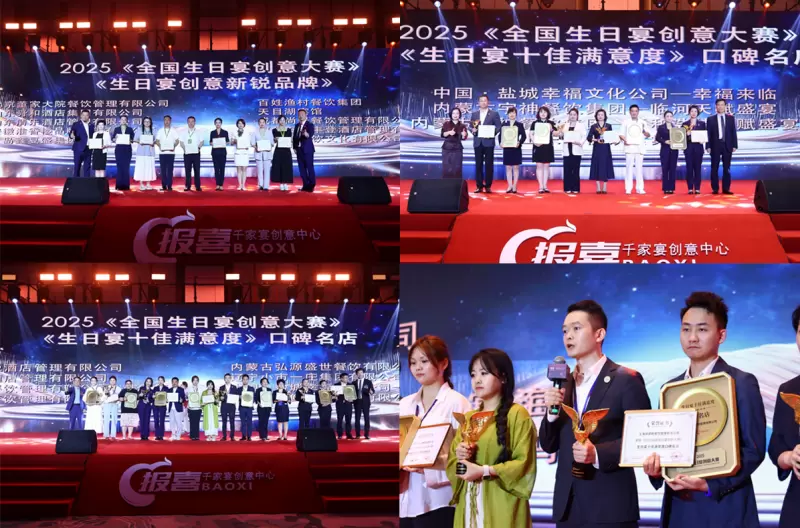 2025年6月24-26日,苏州知音酒店璀璨生辉,由报喜千家宴主办、苏州知音餐饮管理有限公司协办的全国生日宴创意大赛总决赛在行业瞩目中落下帷幕。大赛从500余家申报企业中层层选拔,最终诞生了引领2025生日宴趋势的“超级十二强”,为中国宴会市场高质量发展注入强势动能。来自全国34省市的超1500名餐饮管理者、策划精英齐聚一堂,共鉴十二强巅峰创意,用创意引爆生日宴营收钞能力,用专业推动中国餐饮酒店行业正向变革。