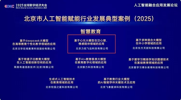 7月3日,2025全球数字经济大会人工智能融合应用发展论坛在北京盛大启幕。心言集团凭借其创新成果——基于心元大模型在泛心理、情感陪伴领域的深度应用,成功入选北京市精心遴选并重磅发布的“人工智能赋能行业发展典型案例”。这一殊荣不仅是对心言集团技术创新与应用实效的高度肯定,更彰显了AI在解决社会深层需求、提升民生福祉方面的巨大潜力与标杆价值。