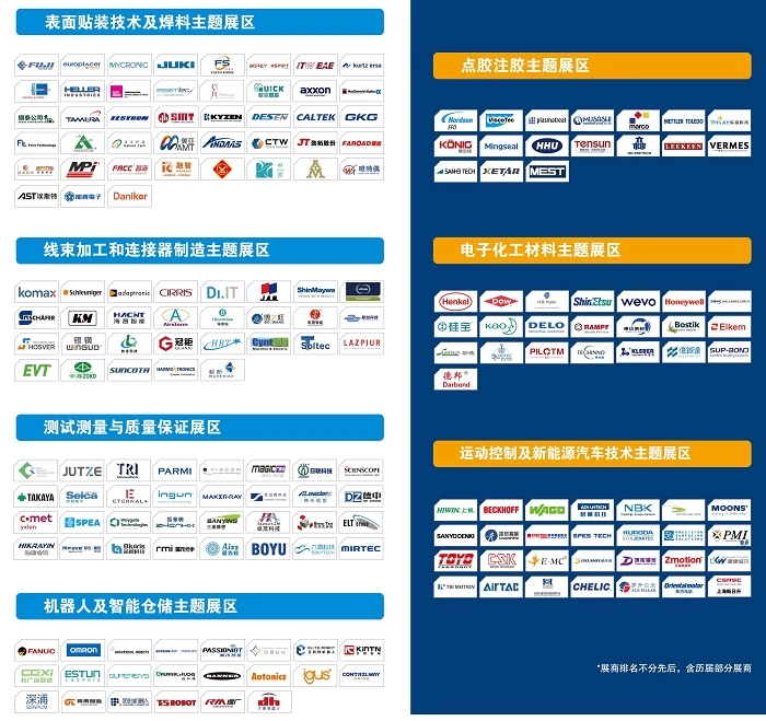 展品范围覆盖电子制造全产业链,包括:电子与化工材料、点胶与粘合技术、电子组装自动化、测试测量与质量保证、电子制造服务(EMS)、表面贴装技术(SMT)、线束加工与连接器制造、元器件制造、运动控制与驱动技术、工业传感器、机器人及智能仓储等,一站式呈现智能制造与电子创新产业链的全球前沿技术与产品。