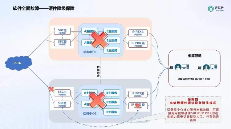 在最严峻的“软件全面故障”场景下,若呼叫双中心的核心软件服务均告失效,客户来电将无法被智能系统识别或分配。