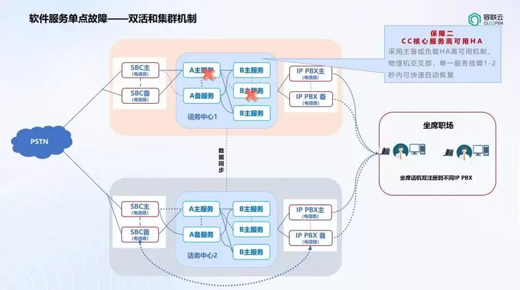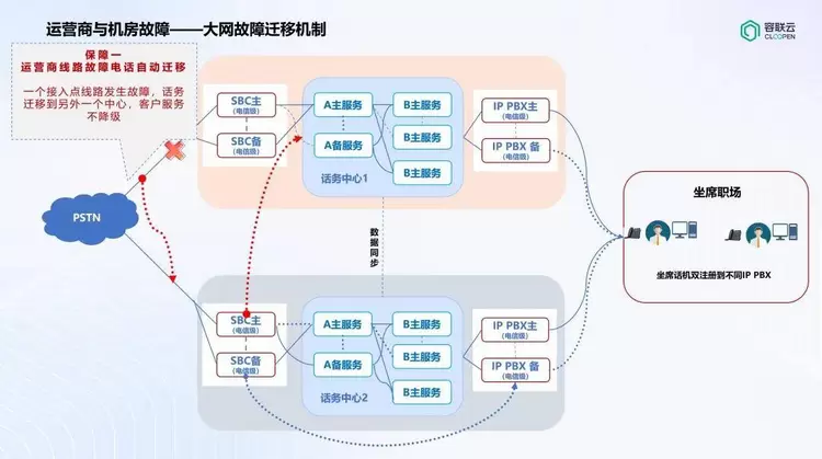 以财险坐席服务为例,若某台坐席服务器因资源过载宕机,系统会立即将该线路分配至其他可用节点,话单与录音同步实时备份,确保业务数据零丢失。这种“自愈式” 保障机制,使核心服务故障恢复时间从传统方案的半小时以上缩短至秒级,大幅提升了服务连续性。