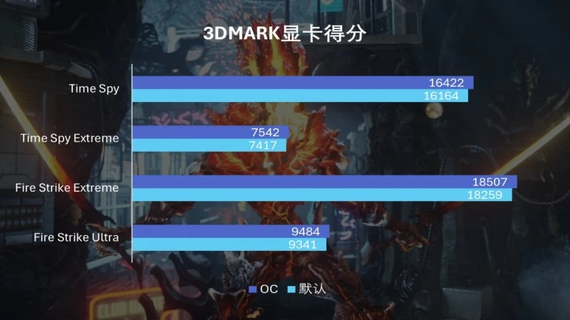 《3DMARK》理论测试,撼讯RX 9060XT暗黑犬16G OC档与静音档性能如图:其中Time Spy相差1.6%、Time Spy Extreme相差1.69%、Fire Strike Extreme相差1.36%,Fire Strike Ultra则达到1.53%,平均差距在1.54%。
