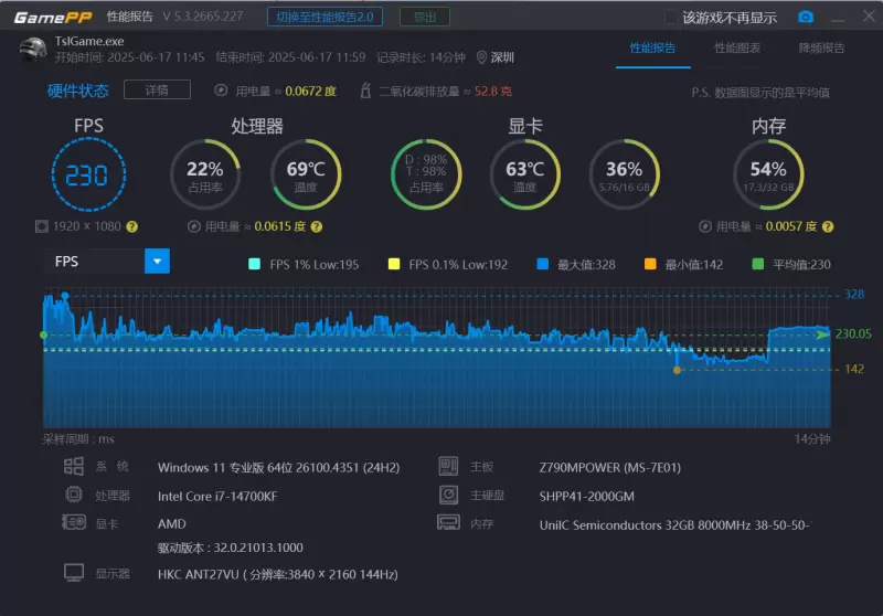 《CS2》1080P高画质下:OC档平均帧率为328 FPS,low帧203.8 FPS;静音档平均帧率325.3 FPS,low帧201.3 FPS。