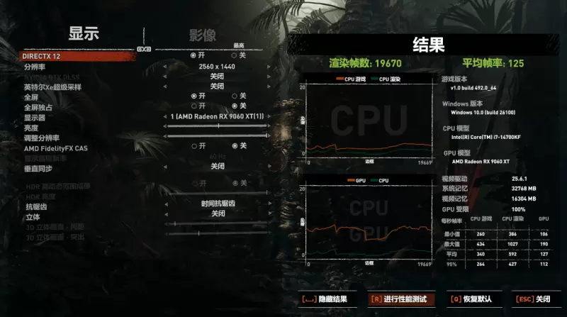 《古墓丽影:暗影》在2K分辨率最高画质预设下:OC档平均帧率125 FPS;静音档平均帧率123 FPS。