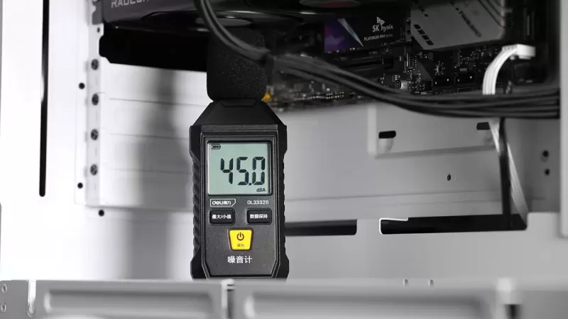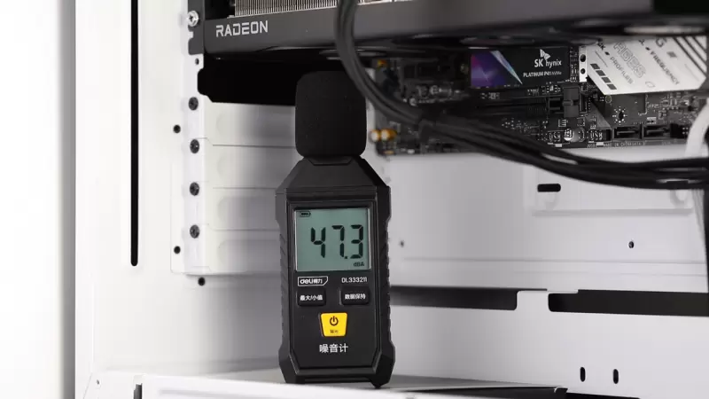 噪音方面在白天情况下,分别进行了“0距离”和人位噪音两种表现:OC档0距离测试噪音为47.3分贝,人位噪音为42.8分贝;静音档0距离测试噪音为45分贝,人位噪音为40.7分贝。