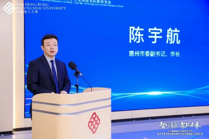 市委副书记、市长陈宇航代表市委、市政府向香港理工大学对惠州发展的大力支持表示感谢。他指出,当前,惠州正抢抓新一轮科技革命和产业变革机遇,持续深化政产学研合作,协同深莞打造珠江口东岸人工智能和机器人产业带。人工智能研究中心的成立是新的起点,也预示着新的成果。期待港理大在惠州投入更多的科研资源,推动人工智能在石化能源新材料、电子信息等产业领域深度应用,不断涌现更多从实验室到生产线的好项目,助力惠州加快打造广东高质量发展新增长极。惠州将一如既往大力支持研究院的建设,全心全意做好服务,汇聚更多资源力量,携手共建粤港澳大湾区政产学研合作的标杆。