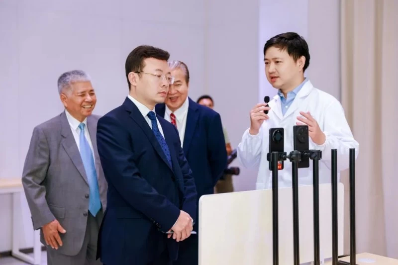 市委副书记、市长陈宇航与全国政协委员、香港理工大学校董会主席林大辉博士等领导参观实验室设备