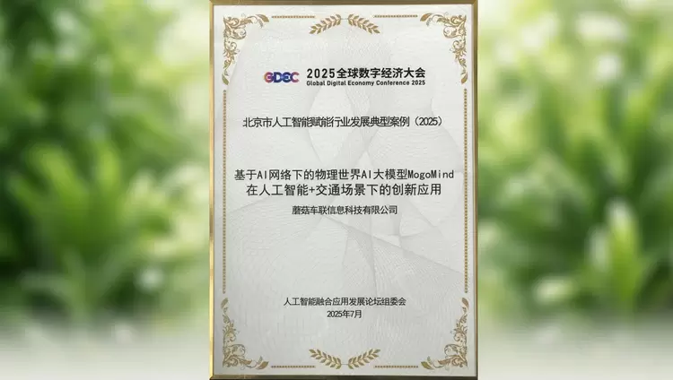 近日,由北京市人民政府联合相关部委共同主办的“2025全球数字经济大会”在京举行。大会期间,蘑菇车联凭借AI大模型与城市交通融合应用的突破性实践成果,以及物理世界实时数字化AI网络建设成效,获评“数字经济标杆企业”,并入选北京市“数字经济创新应用案例”和“人工智能赋能行业发展典型案例”。