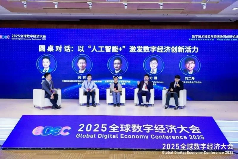 在全球数字经济大会“数字技术投资与跨境协同创新论坛”圆桌对话环节,方磊博士围绕“人工智能+激发数字经济创新活力”主题,与行业领袖、业内专家等共同论道数字经济未来趋势。