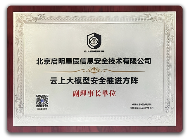 近日,在“全球数字经济大会—云智算安全论坛暨2025第三届SecGo安全会议”上,中国信息通信研究院正式授牌成立“云上大模型安全推进方阵”,发布“2025年可信安全最新评估结果”。凭借在人工智能安全领域深厚积累与创新实践,启明星辰当选方阵副理事长单位;启明星辰天清MAF大模型应用防火墙首批通过中国信通院“大模型内容安全防护产品能力评估”。