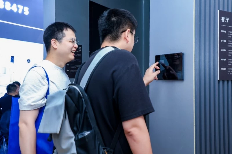 为直观呈现全屋智能的联动魅力,萤石在展会现场打造了复刻真实家居场景的体验屋,融合入户、客厅、厨房、卧室等多个生活场景,通过萤石智慧屏SP4/SP10,用户可一键触发“离家模式”“观影模式”等预设场景。当“观影模式”启动时,灯光自动调暗、窗帘缓缓闭合、电视与音响同步开启;而“离家模式”激活后,智能锁、智能摄像机、传感器同步进入布防状态,全方位守护家庭安全。