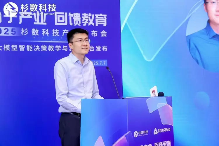 杉数科技联合创始人&CTO王子卓出席活动并为发布会致辞。他表示,基于“始于产业,回馈教育”的理念,依托在人工智能与运筹优化领域的多年积累,杉数科技将企业一线的优化经验、数据算法与复杂决策模型,系统转化为可落地的教学资源和工具,构建“产教融合、学研互促”的闭环生态,解决教学与企业需求脱节、学生实践不足及AI应用滞后等问题。