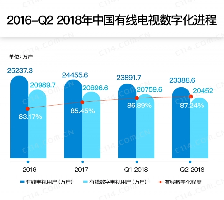 为避免低水平的重复建设,国家自2010年开始就力推三网融合,意图打造综合性网络,为用户提供一站式、全方位服务。三网融合是指电信网、广播电视网、互联网在向宽带通信网、数字电视网、下一代互联网演进过程中,其技术功能趋于一致,业务范围趋于相同,网络互联互通、资源共享,能为用户提供话音、数据和广播电视等多种服务。三网融合打破了电信和广电独立发展的历史,推动广电、电信业务双向进入,从而推动信息网络基础设施互联互通和资源共享,形成适应性广、容易维护、费用低的高速带宽的多媒体基础平台。网络公开的官方和半官方统计数据显示,到2018年6月末,我国电视用户数为4.47亿户,固网宽带用户数为4.16亿户。然而,在加速电信化的宏观政策推动下,面对运营商加速向家庭融合业务延伸的趋势,和行业份额被运营商不断蚕食的现状,广电企业或将被迫向运营商靠拢。