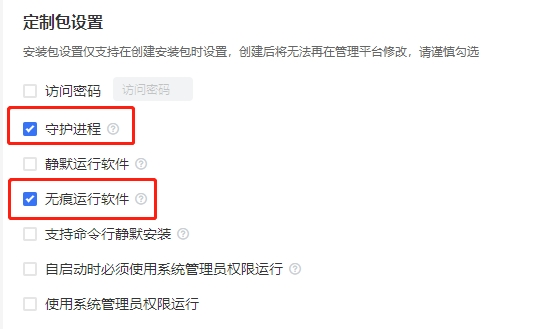 为了避免这种情况,我们可以开启下面两个功能:无痕运行以及进程守护。
