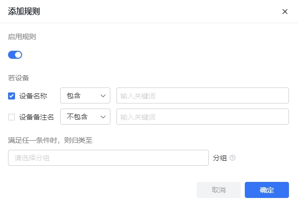 此外,如果是向日葵企业+服务的用户,还可以设置自动分组策略:当系统检测到设备名称/备注名是否包含指定的关键词,就会自动分配到指定的分组。
