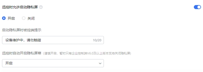 面对这一问题,我们可以开启隐私屏功能。向日葵企业版隐私屏支持自定义显示内容,该功能开启之后,被控端屏幕在远程运维时将显示隐私屏信息,具体的操作过程不会被看到,也不会被干扰。