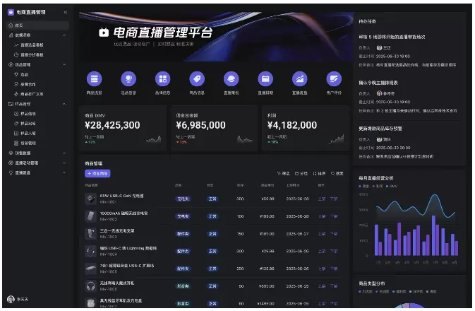 (图:一个使用多维表格应用模式搭建的电商直播管理平台)