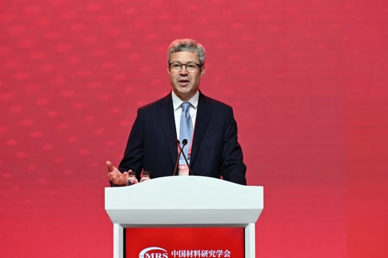Elsevier全球副总裁Peter Harrison发言。他说:“On behalf of all of my colleagues at Elsevier, I am delighted to be able to celebrate the launch in 2025 of these two exciting new journals with the Chinese Materials Research Society - the Review of Materials Research and the Transactions of Materials Research. A journal launch is always exciting, to do two launches together in one year is incredible! ”