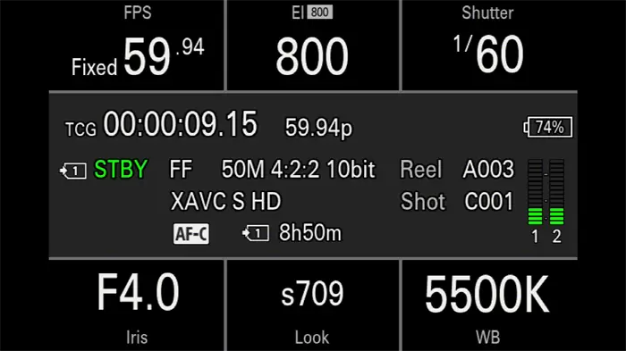FX2配备3.0英寸可触摸LCD屏,支持多角度取景构图。顶部面板与握柄区域设有符合人体工学的控制键位布局,配备录制灯。用户可自定义"BIG6"6宫格主界面,实时显示帧率、ISO、快门(角度/速度)、外观预设、白平衡、光圈等六项核心参数。