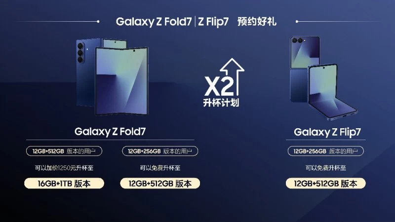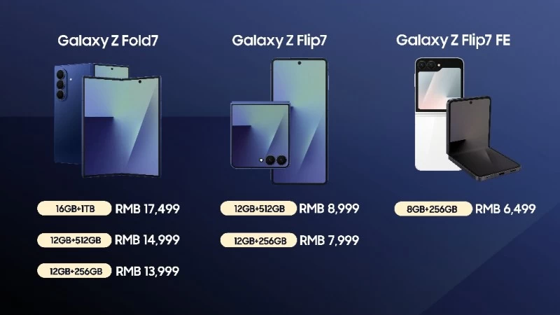 目前,三星Galaxy新品已正式开启预约,三星Galaxy Z Fold7建议零售价13,999元起,Galaxy Z Flip7建议零售价7,999元起,Galaxy Z Flip FE建议零售价6,499元。即日起至7月24日24:00,预约三星Galaxy Z Fold7与Galaxy Z Flip7的用户均可享升杯好礼,即购买12GB+256GB版本,可免费升级到12GB+512GB版本。