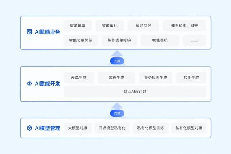 奥哲目前拥有业内最齐全的低代码产品矩阵——大中型企业数智化核心引擎「奥哲·云枢」、中小组织业务数智化一站式平台「氚云」,致力于通过“融合AI的低代码平台+解决方案+方法论”的体系,赋能企业构建全面的数字化建设能力。