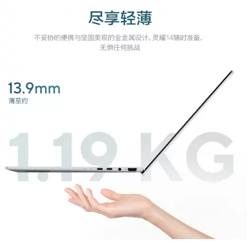 华硕灵耀14 2025以13.9mm超薄机身与约1.19kg轻盈重量,跻身行业轻薄前沿,通过精密金属一体化工艺打造,线条流畅、触感细腻,尽显高级质感。在追求性能与体积平衡的轻薄本领域,灵耀14 2025已实现便携性与专业性的巧妙融合。