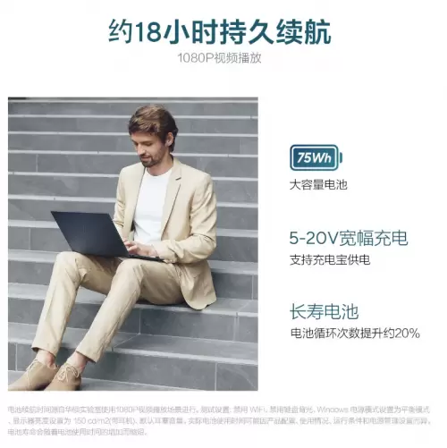 华硕灵耀14 2025 配备了75Wh的超大容量电池,这一电池容量在同级别轻薄本中可谓佼佼者,凭借这一强大的电池配置,它实现了实验室环境下续航时间最长可达约18小时,让用户在各种使用场景下都能减少电量焦虑。