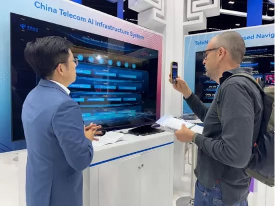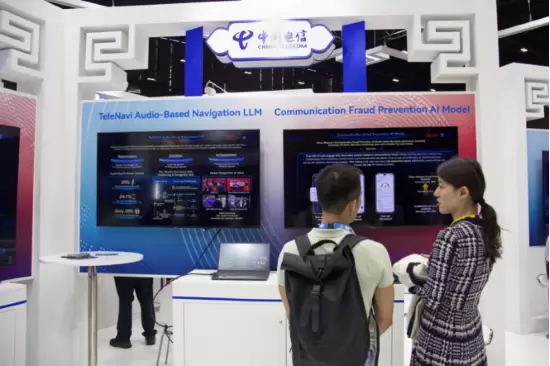 在展区,中国电信展示了AI普惠的最新成果——全球首个纯语音导航定位大模型。该模型以中国电信自研星辰大模型为底座,结合Open Gateway API,让老年人实现不依赖任何智能设备,仅凭一部老年机即可享受准确及时的纯语音电话智能叫车与导航服务。