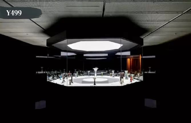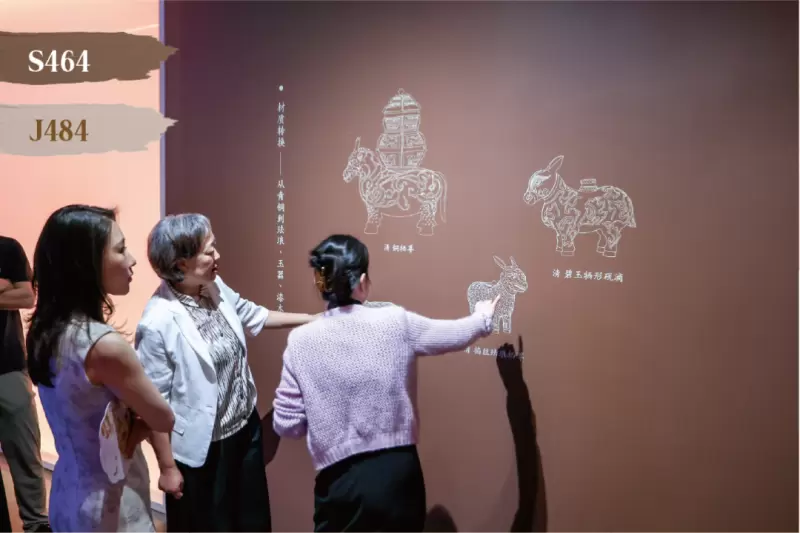 行至展览终章的第三单元,浅黄日光 J389 是明亮的浅黄色,如倾泻的暖阳洒落在展品上。其柔和而明亮的暖黄色调提亮整个展区,同时传递着温暖与希望,令人不禁对此次国宝、色彩相遇的奇妙旅程回味无穷,为这场“时光之旅”画上了圆满句点。