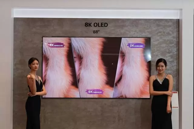 值得一提的是,除了画质方面的出色表现,OLED在设计方面也展现了独特的一面。在活动现场,主办方展示了88寸的8K OLED屏幕、65寸卷轴OLED屏幕,以及55寸透明OLED屏幕。其中65寸卷曲OLED屏幕更是第一次在中国亮相,其惊艳的造型引起了与会人员的浓厚兴趣。相而8K超高清分辨率也是未来显示行业的发展方向,OLED在此方面也走在了前列。