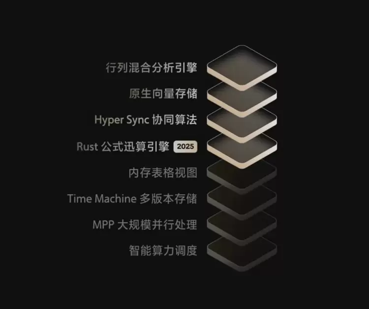 这么多强大的能力,都源于我们全新升级的多维表格数据库,它整合了多种先进的技术。相比于去年,我们升级了 “Rust 公式讯算引擎 ” ,增加了 “Hyper Sync 协同算法” 。
