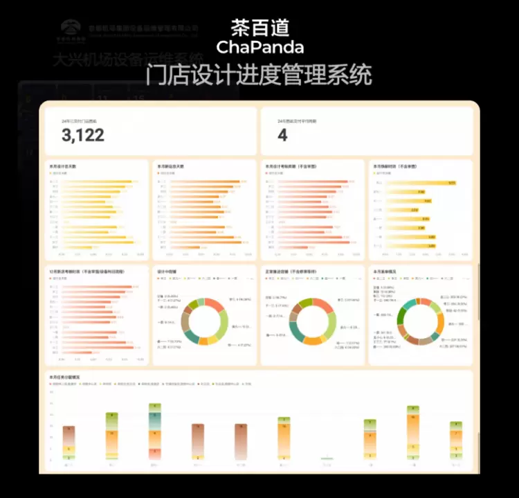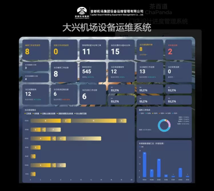 北京大兴机场 ,用飞书多维表格仪表盘将 14 万设备的运维状态直观呈现,机场运行指标实时更新,并实现多周期自动分析与推送使管理决策,精准业务响应也更及时。