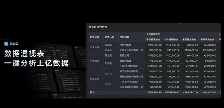 我们引入了功能完整的 数据透视表 ,结合多维表格数据库的强大能力,可以轻松应对高达上亿行的数据分析 。