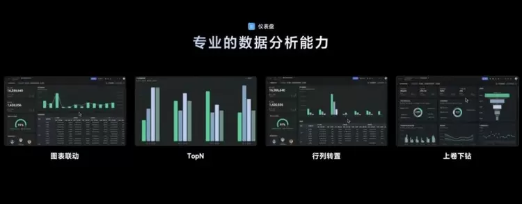 我们还新增了: 「图表联动」、「TopN」、「行列转置」、「上卷下钻」 等等一系列专业的数据分析能力。