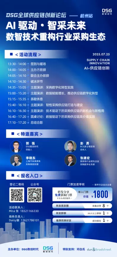 •高端智库赋能:邀请DSG数创时代核心专家,解读AI技术在采购场景中的前沿应用。