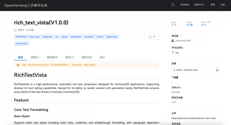 目前,RTV组件已正式上架OpenHarmony三方库中心仓和鸿蒙开发者官网。开发者可搜索“rich_text_vista”获取源码及相关文档,快速集成,提升应用表现力。