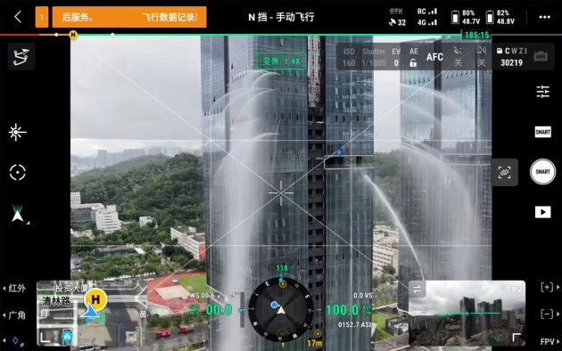 高楼起火后,地面灭火救援力量难以抵达起火现场,无人机作为救援急先锋,飞至起火点附近展开侦察。