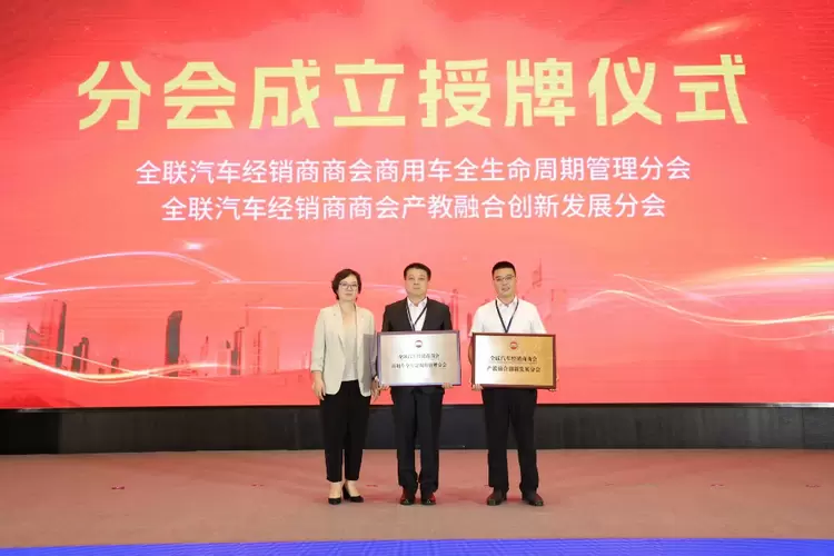 为进一步提升商会服务行业能力,全联汽车经销商商会宣布新成立的商用车全生命周期分会和产教融合分会,并在大会上为两个分会举行了分会成立授牌仪式。