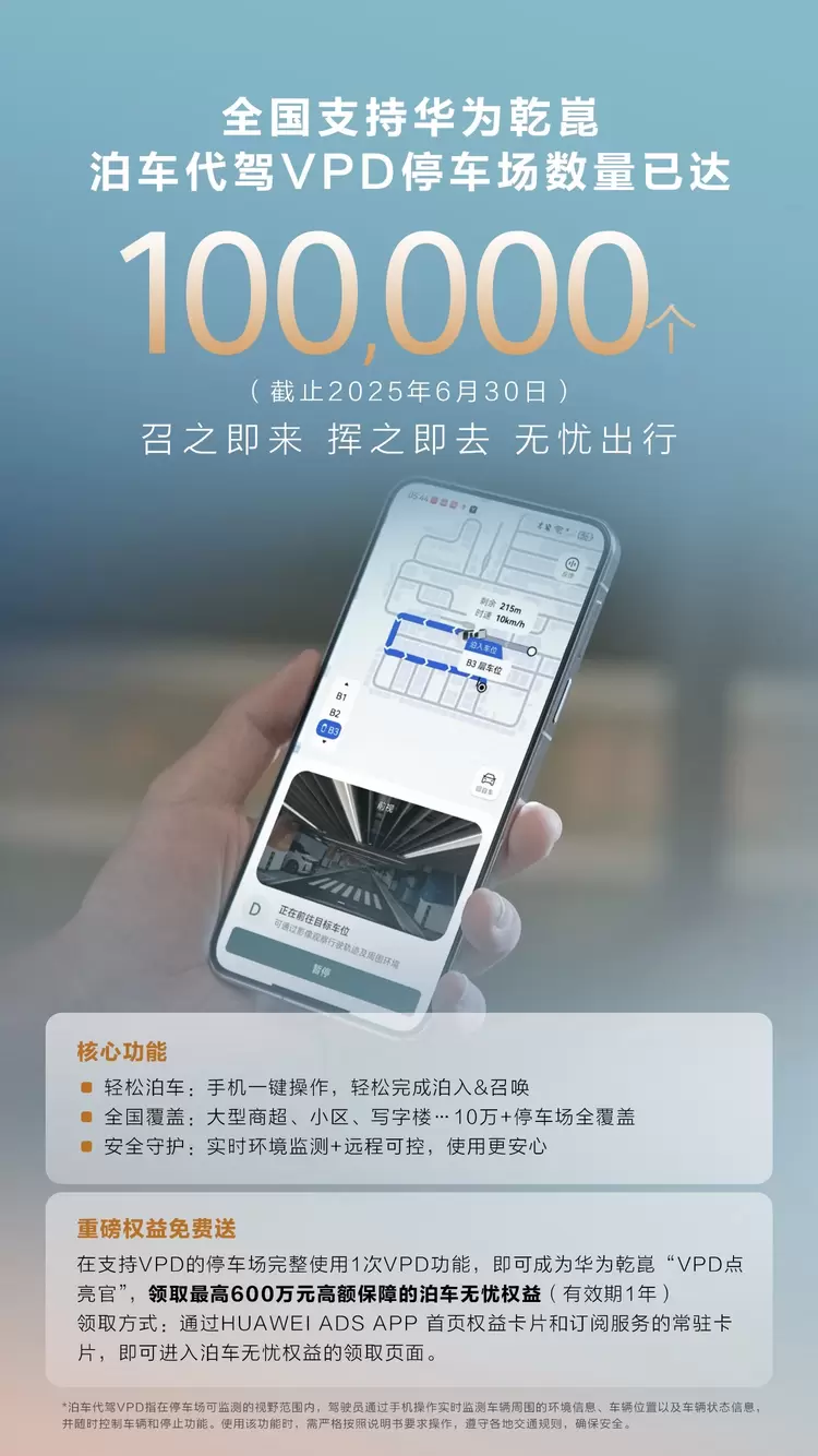全国 10 万 + 停车场支持华为乾崑 泊车代驾VPD ,开启出行新体验