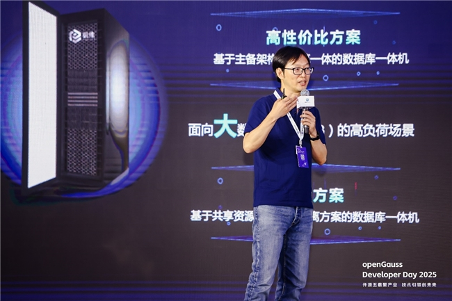 openGauss 技术委员会委员、2012 实验室高斯部首席架构师王磊,openGauss 技术委员会委员阙鸣健,openGauss社区Maintainer曹宇分享了《向量驱动新智能,RAC多写破局,内核升级再启航》的主题演讲,全面展示了openGauss7.0.0创新版本的技术特性。曹宇指出,传统数据库主从架构存在业务可靠性、性能及资源利用率三大问题,这推动了openGauss走向多主架构的创新突破。新一代 openGauss 采用计算池、内存池、存储池三层解耦的存算分离架构,通过轻量级锁、免分布式事务及全局页级MVCC等技术,结合OceanStor Dorado企业级全闪存存储解决方案的高性能、高可靠特性,实现多写场景下的高并发处理能力,展示了openGauss 在内核、AI 和四高能力上的最新技术成果及未来技术演进方向。