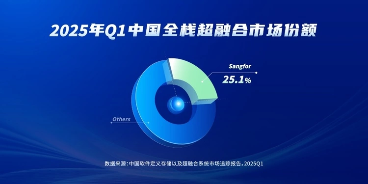国际数据公司(IDC)最新发布的《中国软件定义存储以及超融合系统市场追踪报告,2025Q1》显示,深信服超融合在2025年第一季度,以25.1%的市场占有率位居中国全栈超融合市场第一。